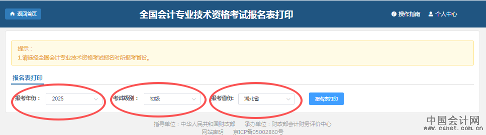 第六步:根据《2025年度全国会计专业技术初级资格考试网上报名考生信息表》中“报名点名称”,确认本人的报名点及证书领取地点。如:报名点名称为“湖北省武汉市江汉区”,则考生的报名点为江汉区,证书领取地点为江汉区财政局会计科。