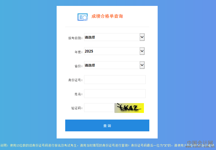 2.全国会计专业技术中级资格考试成绩合格单和报名点查询方法