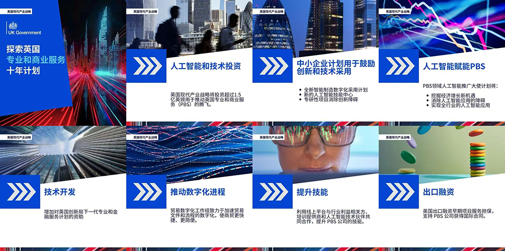包括推出新的“智能制造”数字采用项目,扩大英国研究与创新机构的专业和商业服务创新项目,在五个高潜力城市设立专业和商业服务中心,建立人工智能技能中心,并启动新的研究项目以解决创新障碍,首个聚焦房地产行业。