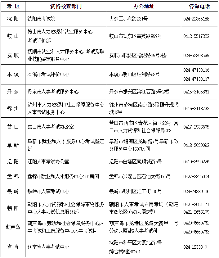 驻沈中、省直单位报考人员资格核查与监管工作由省人事考试中心负责;其他各市报考人员资格核查与监管工作由所在市人事考试部门负责。全省人事考试资格核查部门咨询电话见附件1。