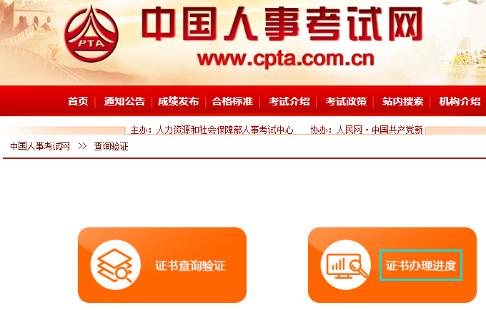 三、进入资格证书查询验证界面,点击【证书办理进度】